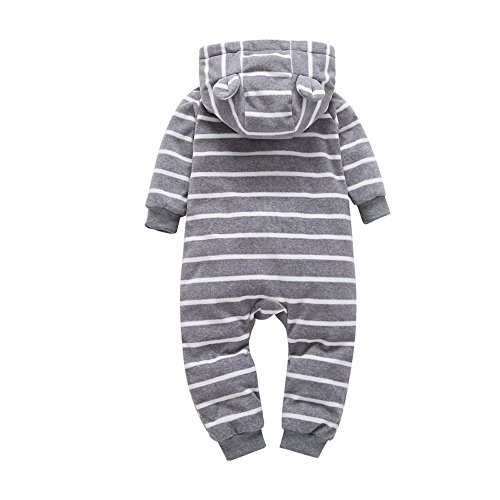 (プタス)Putars ベビー服 子供服 ロンパース フリース 厚手 女の子 男の子 長袖 総柄 ストライプ柄 可愛い 秋 冬 新生児 歩行服 出産お祝い 記念日 プレゼント 6-24ヶ月