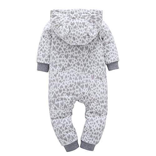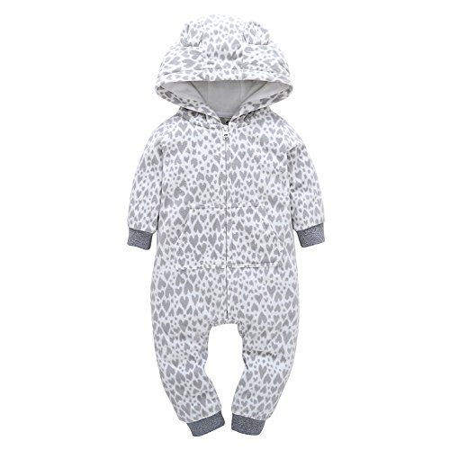 (プタス)Putars ベビー服 子供服 ロンパース フリース 厚手 女の子 長袖 総柄 ハート柄 可愛い 秋 冬 新生児 歩行服 出産お祝い 記念日 プレゼント 6-24ヶ月