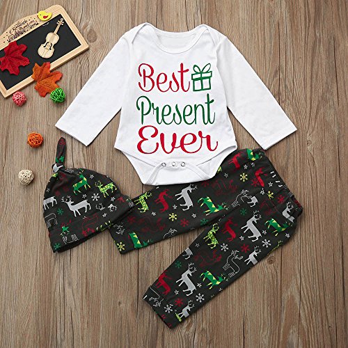 (プタス)Putars ベビー服 子供服 上下セット ロンパース 男の子 長袖 クリスマス BEST PRESENT EVER 可愛い 秋 冬 新生児 歩行服 出産お祝い 記念日 プレゼント 0-18ヶ月