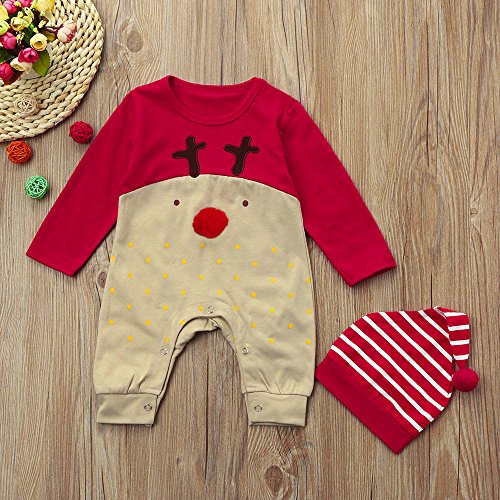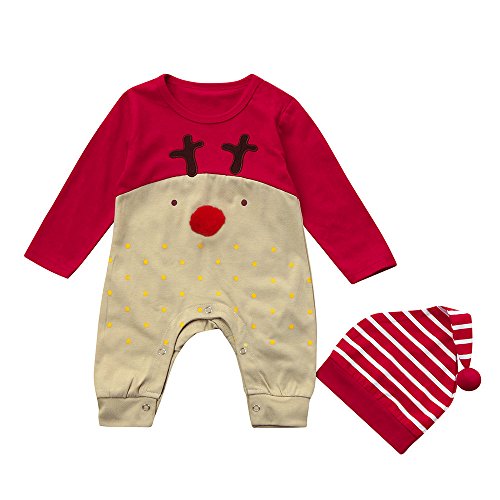 (プタス)Putars ベビー服 子供服 ロンパース 女の子 男の子 長袖 鹿柄 クリスマス 帽子付き 可愛い 秋 冬 新生児 歩行服 出産お祝い 記念日 プレゼント 0-24ヶ月