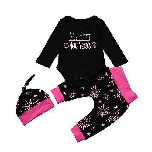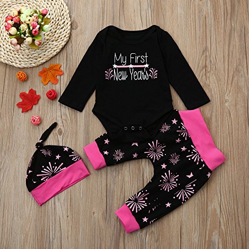 (プタス)Putars ベビー服 子供服 上下セット ロンパース 女の子 花火柄 英字柄 FIRST NEW YEAR 可愛い 秋 冬 新生児 歩行服 出産お祝い 記念日 プレゼント 0-18ヶ月