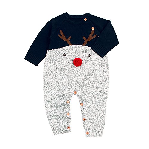 (プタス)Putars ベビー服 子供服 ロンパース ニット セーター 男の子 女の子 トナカイ柄 クリスマス 冬服 防寒 可愛い 秋 冬 新生児 歩行服 出産お祝い 記念日 プレゼント 0-24ヶ月