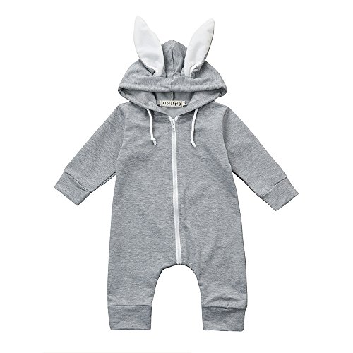 (プタス)Putars ベビー服 子供服 ロンパース 女の子 男の子 耳付き うさぎ模様 新生児 歩行服 出産お祝い 記念日 プレゼント 0-24ヶ月