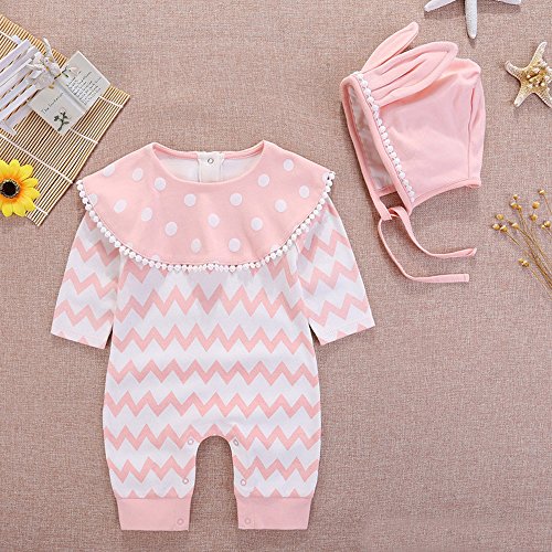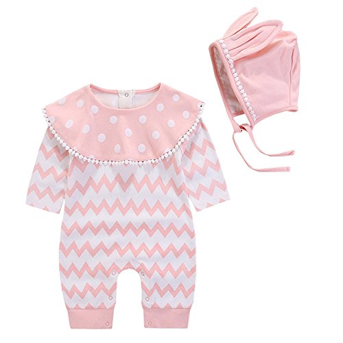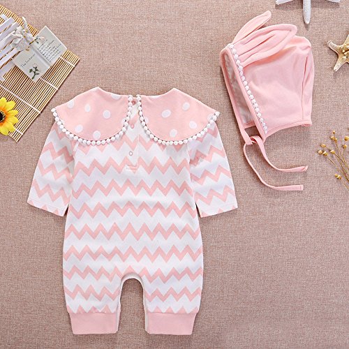 (プタス)Putars ベビー服 子供服 ロンパース 女の子 総柄 波模様 帽子付き 二色 新生児 歩行服 出産お祝い 記念日 プレゼント 0-12ヶ月
