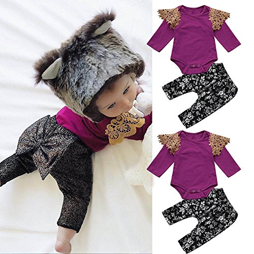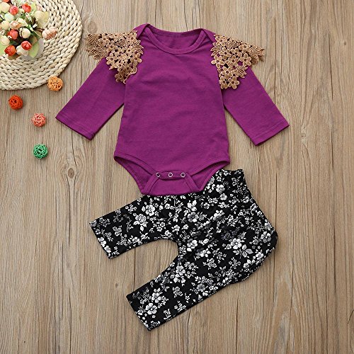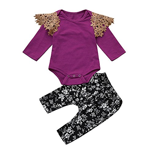 (プタス)Putars ベビー服 子供服 上下セット ロンパース 女の子 フリル レース 花柄 お尻に蝶結び 春 夏 新生児 歩行服 出産お祝い 記念日 プレゼント 0-24ヶ月