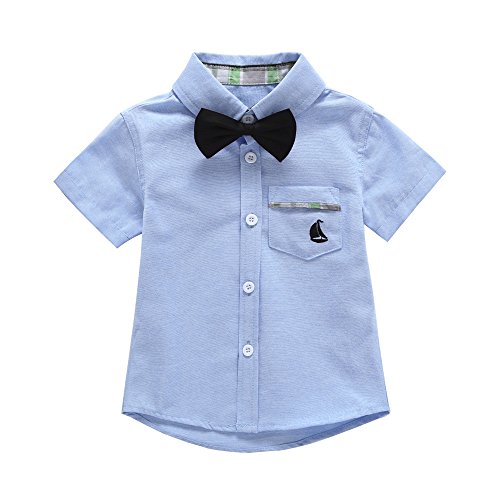 (プタス) Putarsサマーボーイウエスタンタイ半袖ソリッドカラーショートスリーブシャツ通気性コンフォートパーティシャツ18ヶ月 - 5歳