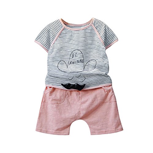 (プタス)Putars ベイビー服 子供服 上下セット 男の子 Tシャツ 半袖 縞模様 髭柄 パンツ 可愛い オシャレ スポーツ 運動会 通園 旅行 記念日 プレゼント 2-7歳