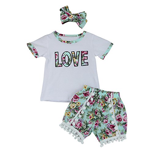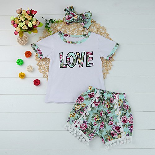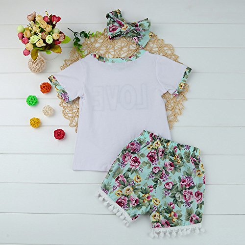 (プタス)Putars ベイビー服 子供服 上下セット 女の子 Tシャツ 花柄 LOVE パンツ タッセル付き ヘアバンド付き 可愛い オシャレ スポーツ 運動会 通園 旅行 記念日 プレゼント 2-6歳