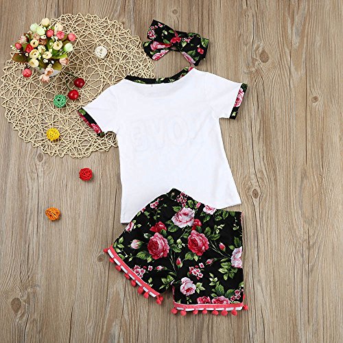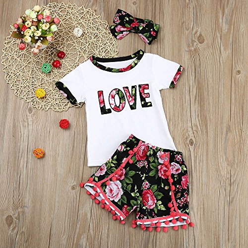 (プタス)Putars ベイビー服 子供服 上下セット 女の子 Tシャツ LOVE 花柄 パンツ タッセル付き ヘアバンド付き 可愛い オシャレ スポーツ 運動会 通園 旅行 記念日 プレゼント 2-6歳