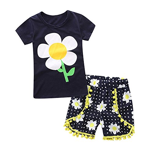 (プタス)Putars ベイビー服 子供服 上下セット 女の子 Tシャツ 半袖 花柄 パンツ タッセル付き 可愛い オシャレ スポーツ 運動会 通園 旅行 記念日 プレゼント 1-5歳