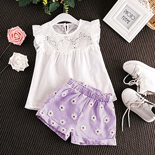 (プタス)Putars ベイビー服 子供服 上下セット 女の子 Tシャツ フリル袖 レース パンツ 花柄 可愛い オシャレ スポーツ 運動会 通園 旅行 記念日 プレゼント 2-7歳