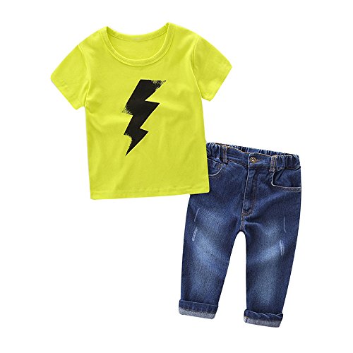 (プタス)Putars ベビー服 子供服 上下セット 二点セット 男の子 半袖 稲妻模様 デニムパンツ 可愛い オシャレ スポーツ 運動会 旅行 記念日 プレゼント 2-7歳