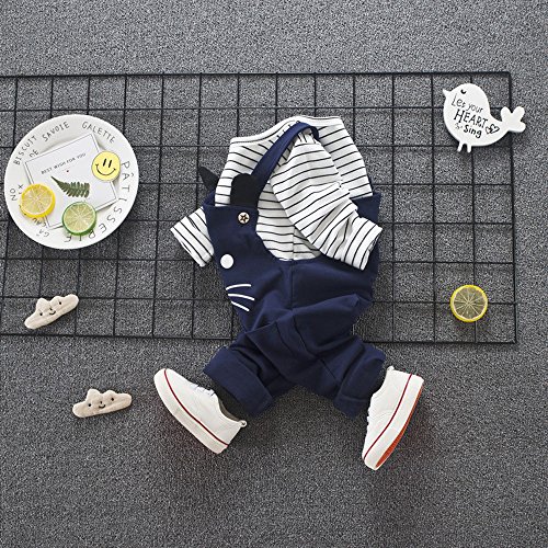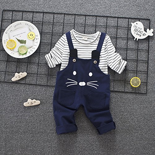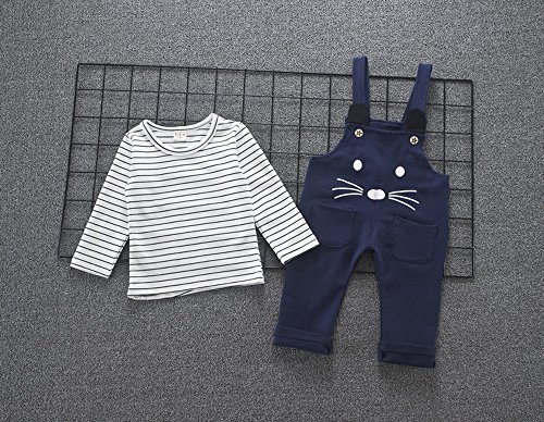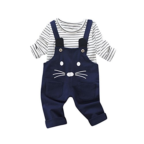 (プタス)Putars ベビー服 子供服 上下セット 二点セット 男の子 長袖 サロペット 猫柄 縞模様 可愛い オシャレ スポーツ 運動会 旅行 記念日 プレゼント 1-4歳