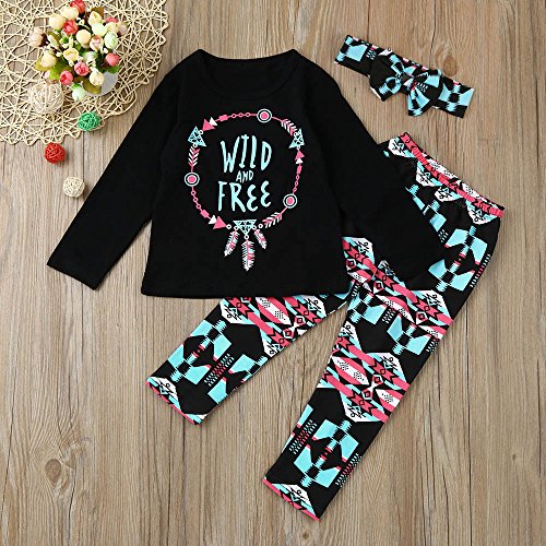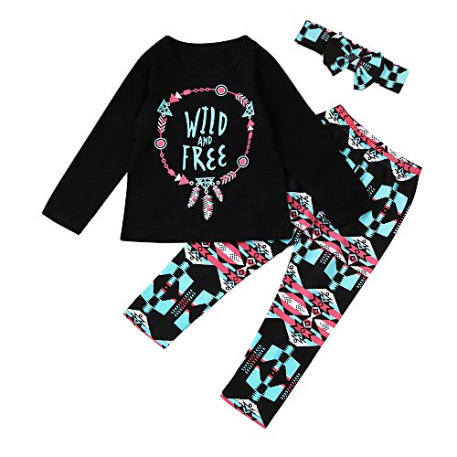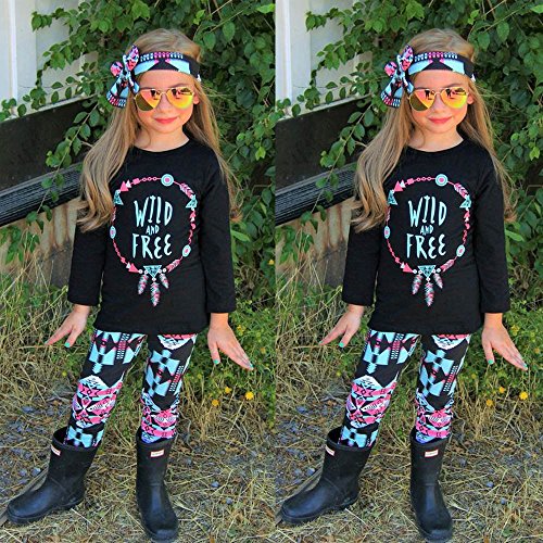 (プタス)Putars ベビー服 子供服 上下セット Tシャツ 長袖 女の子 wild and free ヘアバンド付き 可愛い 春 秋 スポーツ 運動会 旅行 記念日 プレゼント 24ヶ月-6歳