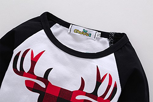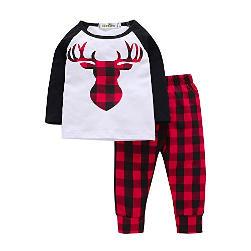 (プタス)Putars ベビー服 子供服 上下セット Tシャツ 長袖 女の子 鹿柄 チェック柄 可愛い 春 秋 冬 スポーツ 運動会 旅行 記念日 プレゼント 6-24ヶ月