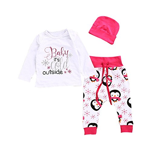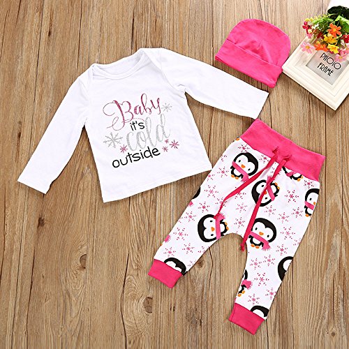 (プタス)Putars ベビー服 子供服 上下セット Tシャツ 女の子 ペンギン柄 COLD OUTSIDE 帽子付き 可愛い 秋 冬 スポーツ 運動会 旅行 記念日 プレゼント 6-24ヶ月