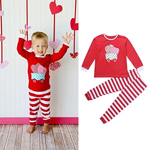 (プタス)Putars ベビー服 子供服 上下セット Tシャツ 男の子 女の子 長袖 ハート柄 ストライプ柄 可愛い 秋 冬 スポーツ 運動会 旅行 記念日 プレゼント 12ヶ月-5歳