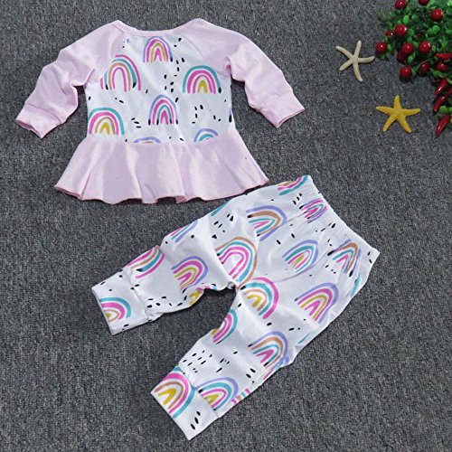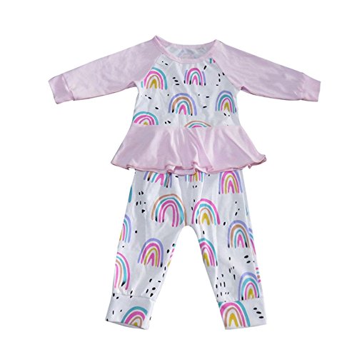 (プタス)Putars ベビー服 子供服 Tシャツ 上下セット 女の子 長袖 レインボー 総柄 可愛い 秋 冬 スポーツ 運動会 旅行 記念日 プレゼント 1-5歳