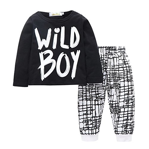 (プタス)Putars ベビー服 子供服 上下セット Tシャツ 男の子 長袖 WILD BOY 可愛い 秋 冬 スポーツ 運動会 旅行 記念日 プレゼント 6-18ヶ月