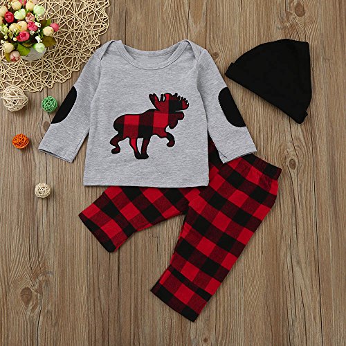 (プタス)Putars ベビー服 子供服 上下セット Tシャツ 女の子 男の子 長袖 鹿柄 チェック柄 可愛い 秋 冬 スポーツ 運動会 旅行 記念日 プレゼント 6-24ヶ月