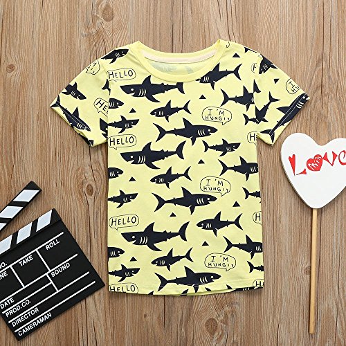 (プタス)Putars ベビー服 子供服 Tシャツ 男の子 半袖 サメ柄 総柄 四色 夏 可愛い パーティー 記念日 プレゼント 2-7歳