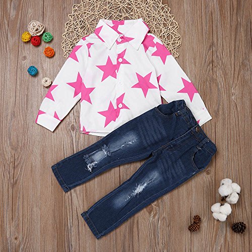 (プタス)Putars ベビー服 子供服 上下セット シャツ 女の子 長袖 星柄 ジーパン付き 可愛い 秋 冬 スポーツ 運動会 旅行 記念日 プレゼント 12ヶ月-6歳