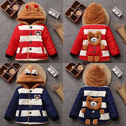 (プタス)Putars ベビー服 子供服 コート 男の子 クマ柄 縞模様 裏起毛 二色 防寒 秋 冬 可愛い 記念日 プレゼント 6ヶ月-4歳