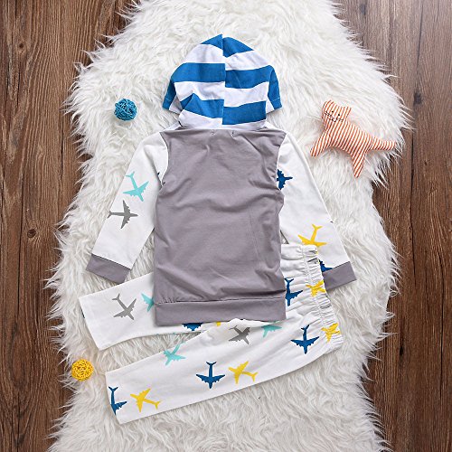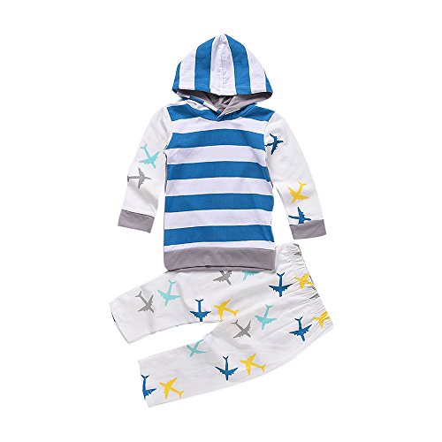 (プタス)Putars ベビー服 子供服 上下セット パーカー 長袖 男の子 縞模様 飛行機柄 可愛い 春 秋 スポーツ 運動会 旅行 記念日 プレゼント 3-18ヶ月