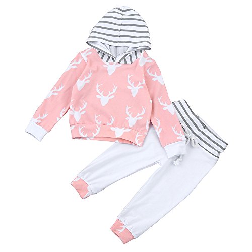 (プタス)Putars ベビー服 子供服 上下セット パーカー 長袖 女の子 鹿柄 可愛い 春 秋 スポーツ 運動会 旅行 記念日 プレゼント 6-36ヶ月