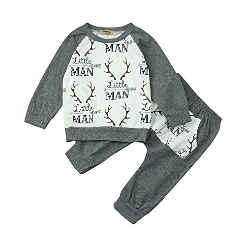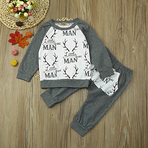 (プタス)Putars ベビー服 子供服 上下セット パーカー 男の子 長袖 鹿柄 LITTLE MAN可愛い 秋 冬 スポーツ 運動会 旅行 記念日 プレゼント 12ヶ月-3歳