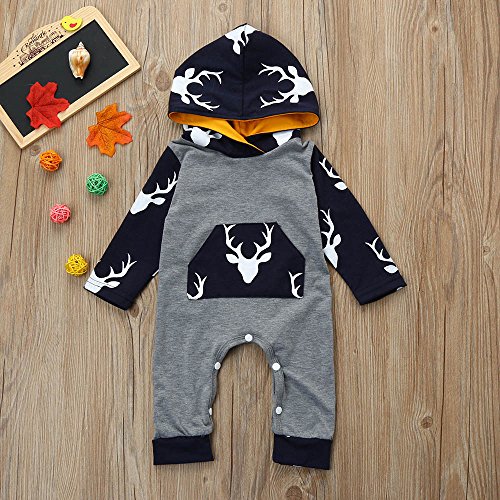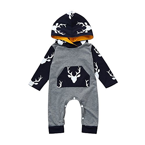 (プタス)Putars ベビー服 子供服 ロンパース パーカー 男の子 長袖 鹿柄 クリスマス 可愛い 秋 冬 新生児 歩行服 出産お祝い 記念日 プレゼント 0-18ヶ月
