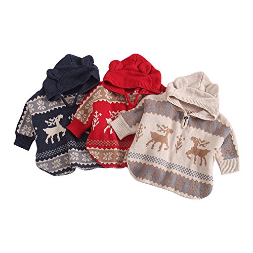 (プタス)Putars ベビー服 子供服 パーカー セーター ニット 女の子 男の子 長袖 クリスマス 鹿柄 三色 可愛い 秋 冬 旅行 記念日 プレゼント 3-24ヶ月