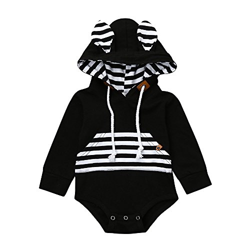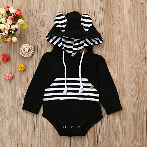 (プタス)Putars ベビー服 子供服 ロンパース パーカー 男の子 耳付き ストライプ柄 新生児 歩行服 出産お祝い 記念日 プレゼント 0-18ヶ月