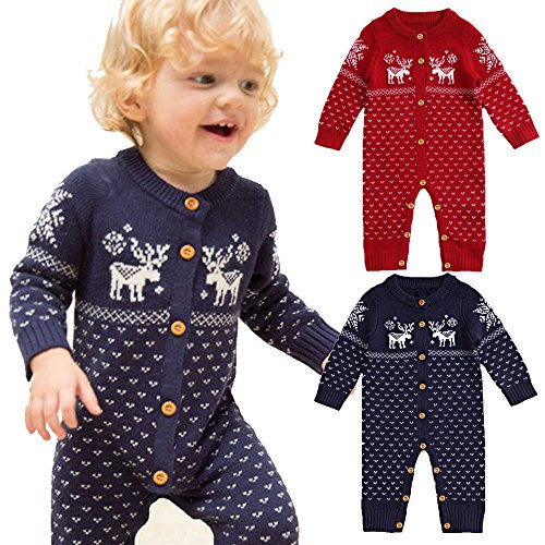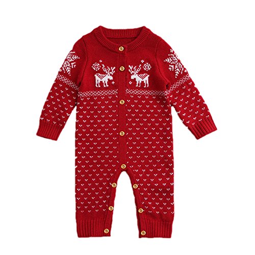 (プタス)Putars ベビー服 子供服 ロンパース ニット セーター 二色 女の子 男の子 クリスマス 鹿柄 冬服 可愛い 秋 冬 新生児 歩行服 出産お祝い 記念日 プレゼント 4-22ヶ月