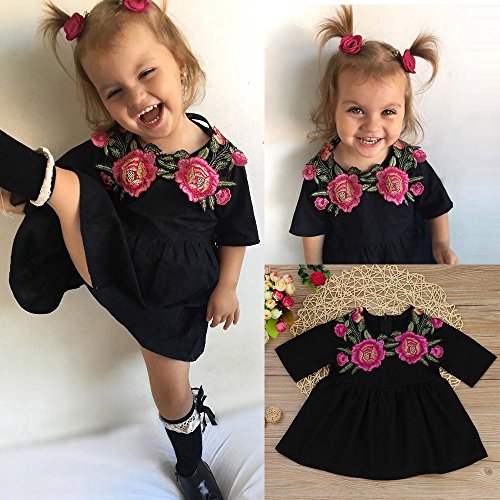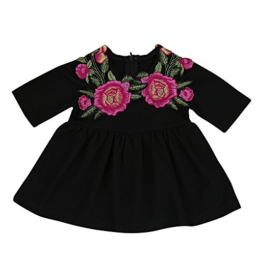 (プタス)Putars ベイビー服 子供服 女の子 ワンピース ドレス 五分袖 花柄 バラ柄 刺繍 可愛い オシャレ プリンセス 通園 発表会 旅行 誕生日 記念日 プレゼント 1-4歳