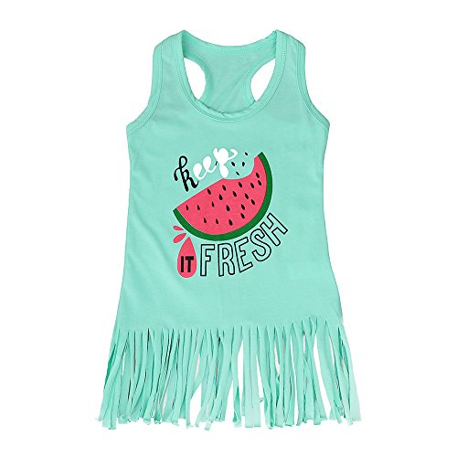 (プタス)Putars ベイビー服 子供服 女の子 ワンピース ドレス ノースリーブ ベスト スイカ柄 夏 フリンジ模様 可愛い オシャレ プリンセス 通園 発表会 旅行 誕生日 記念日 プレゼント 1-4歳