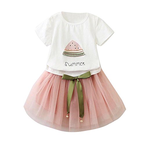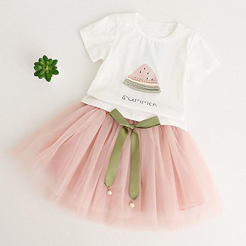 (プタス)Putars ベイビー服 子供服 女の子 二点セット スカート Tシャツ 半袖 スイカ柄 夏模様 可愛い オシャレ プリンセス 通園 発表会 旅行 記念日 プレゼント 2-7歳