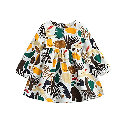 (プタス)Putars ベイビー服 子供服 女の子 ワンピース ドレス 長袖 動物柄 森系 可愛い オシャレ プリンセス 通園 発表会 旅行 記念日 プレゼント 2-6歳