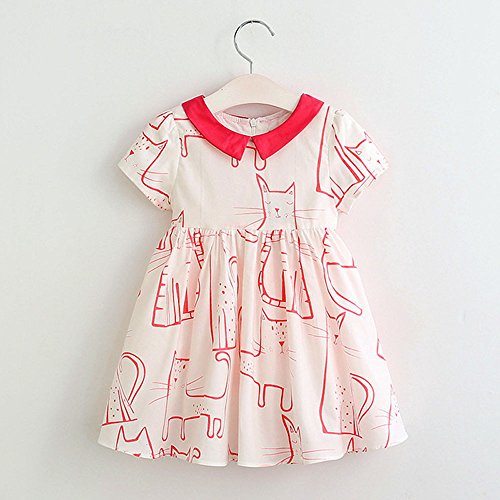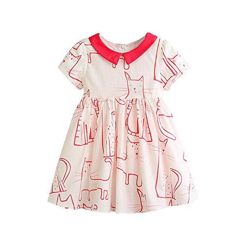 (プタス)Putars ベイビー服 子供服 女の子 ワンピース ドレス 半袖 猫柄 可愛い オシャレ プリンセス 通園 発表会 旅行 記念日 プレゼント 2-7歳