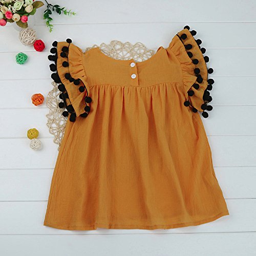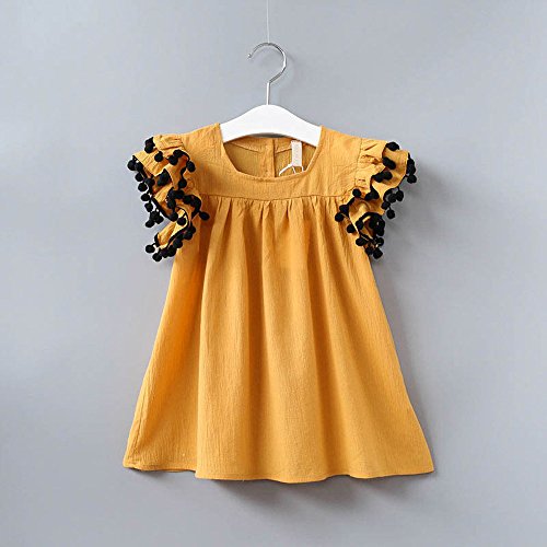 (プタス)Putars ベイビー服 子供服 女の子 ワンピース ドレス フリル袖 タッセル付き 可愛い オシャレ プリンセス 通園 発表会 旅行 記念日 プレゼント 1-5歳