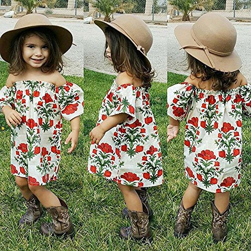 (プタス)Putars ベイビー服 子供服 女の子 ワンピース ドレス オフショルダー 花柄 可愛い オシャレ プリンセス 通園 発表会 旅行 記念日 プレゼント 18ヶ月-5歳