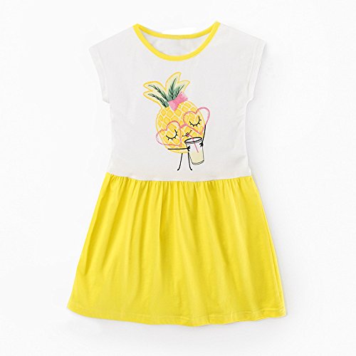 (プタス)Putars ベイビー服 子供服 女の子 ワンピース ドレス 半袖 パイナップル柄 可愛い オシャレ プリンセス 通園 発表会 旅行 記念日 プレゼント 3-9歳