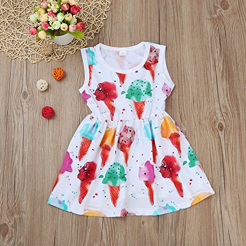 (プタス)Putars ベビー服 子供服 女の子 ワンピース ドレス ノースリーブ アイスクリーム柄 可愛い オシャレ 通園 発表会 旅行 記念日 プレゼント 1-4歳