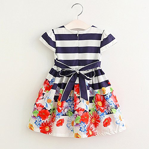 (プタス)Putars ベビー服 子供服 女の子 ワンピース ドレス 半袖 縞模様 花柄 可愛い オシャレ 通園 発表会 旅行 記念日 プレゼント 2-7歳
