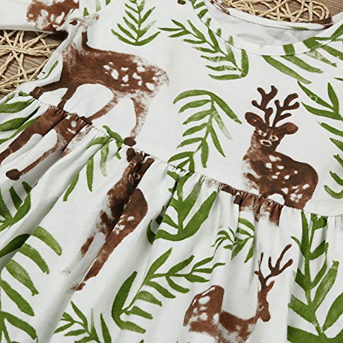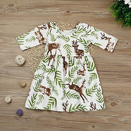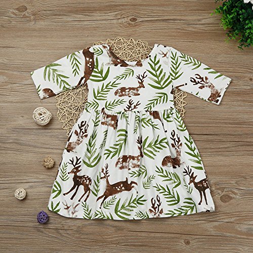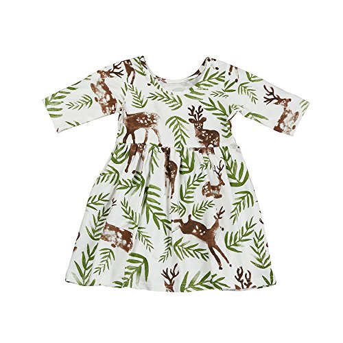 (プタス)Putars ベビー服 子供服 女の子 ワンピース ドレス 五分袖 鹿 葉柄 可愛い オシャレ 通園 発表会 旅行 記念日 プレゼント 1-4歳