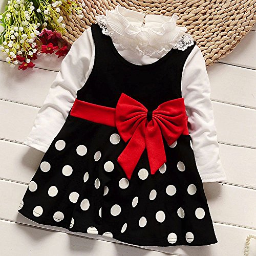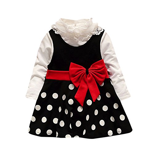 (プタス)Putars ベビー服 子供服 女の子 ワンピース ドレス 重ね着 長袖 蝶結び 水玉柄 暖かい 可愛い オシャレ 通園 発表会 旅行 記念日 プレゼント 6ヶ月-24ヶ月