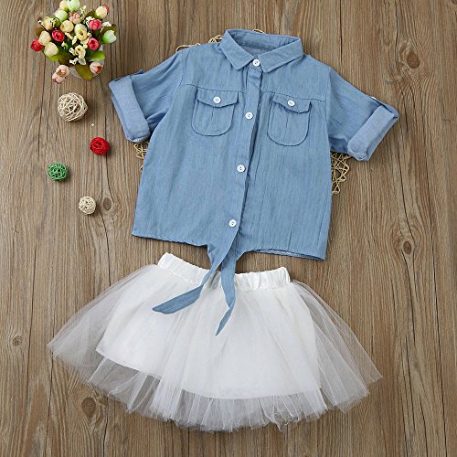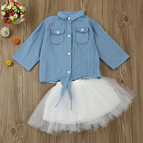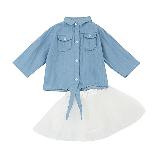 (プタス)Putars ベビー服 子供服 上下セット デニムシャツ チュールスカート 長袖 女の子 可愛い 春 秋 冬 スポーツ 運動会 旅行 記念日 プレゼント 6ヶ月-3歳