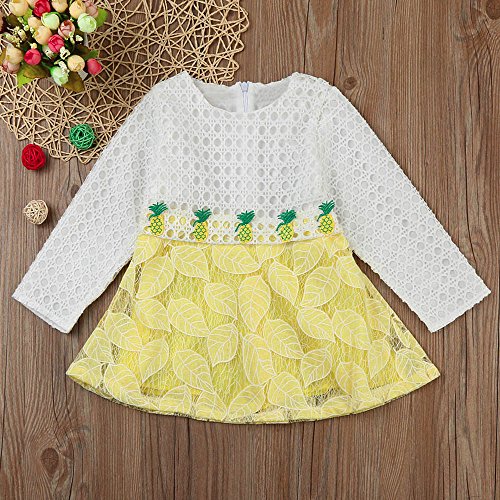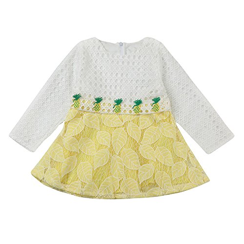 (プタス)Putars ベビー服 子供服 女の子 ワンピース チュールドレス 透かし模様 パイナップル柄 長袖 可愛い 秋冬 オシャレ 通園 発表会 旅行 記念日 プレゼント 6ヶ月-3歳