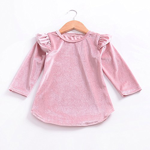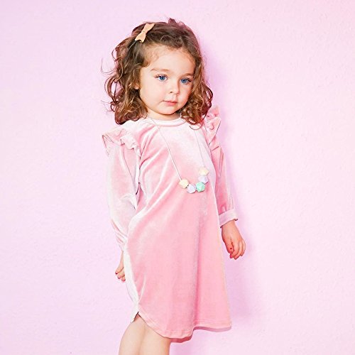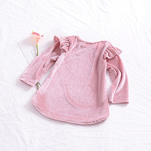 (プタス)Putars ベビー服 子供服 女の子 ワンピース ドレス 長袖 フリル ベロア ピンク 可愛い 秋冬 オシャレ 通園 発表会 旅行 記念日 プレゼント 12ヶ月-3歳