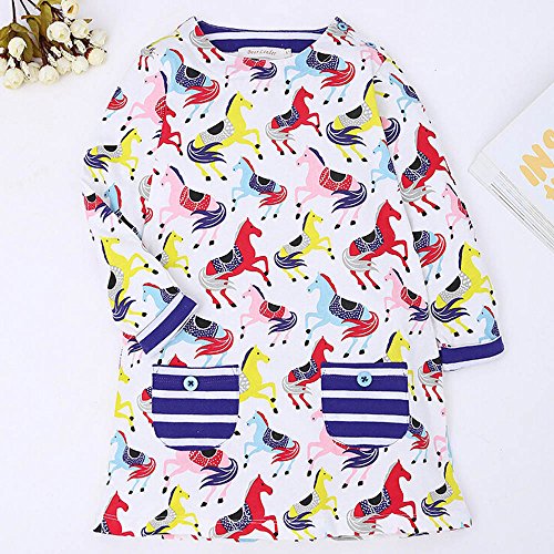 (プタス)Putars ベビー服 子供服 女の子 ワンピース ドレス 長袖 総柄 馬柄 動物柄 可愛い 秋冬 オシャレ 通園 発表会 旅行 記念日 プレゼント 2-7歳